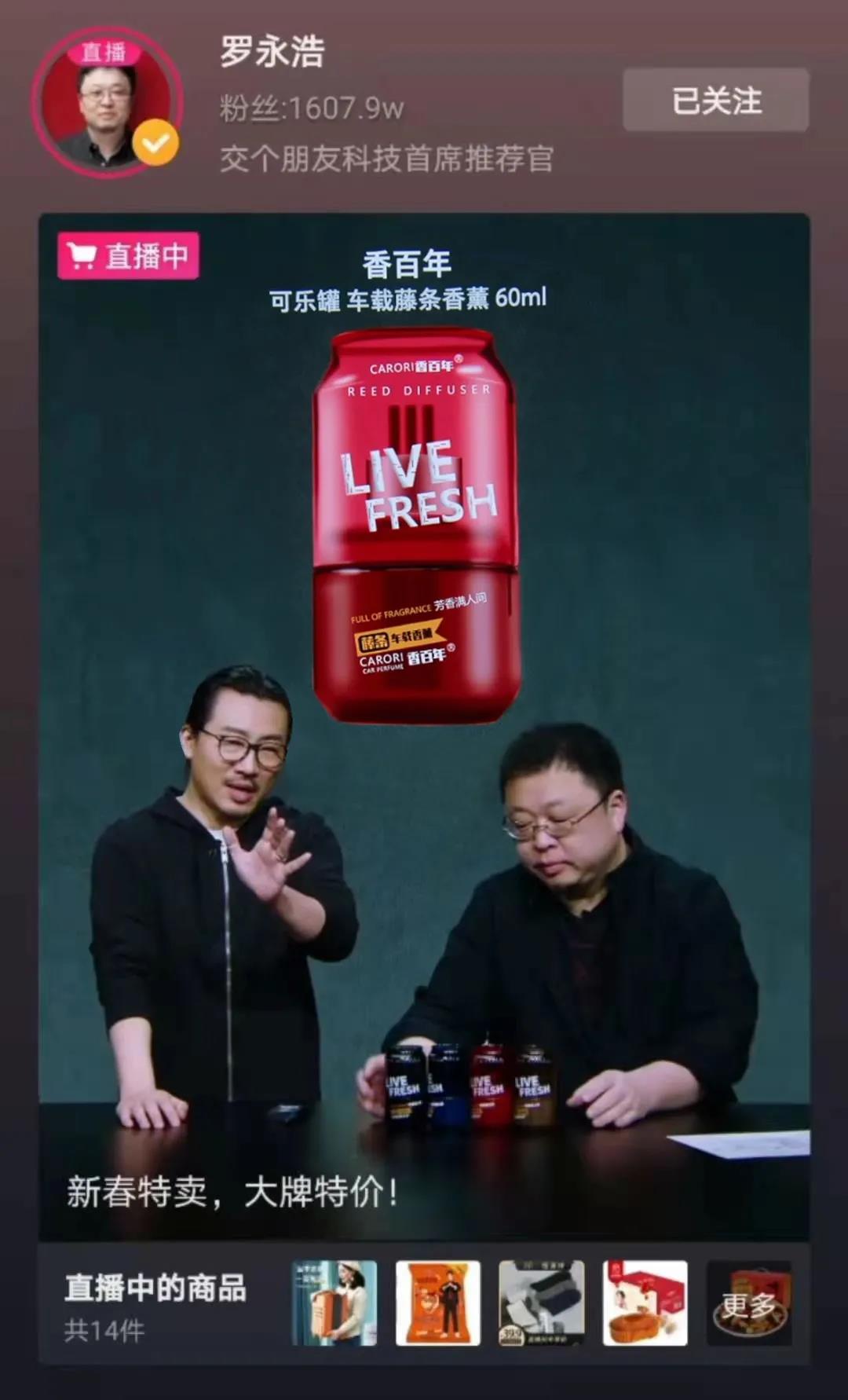 香百年能夠在眾多車載香水品牌中被羅永浩頂流帶貨主播點贊和肯定,足見香百年的產品力和品牌力!